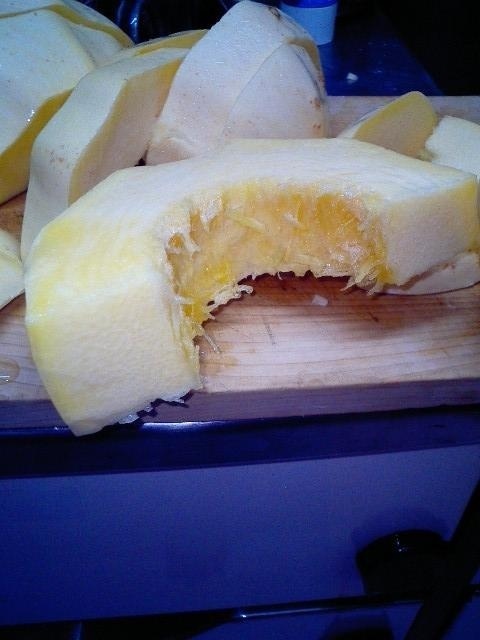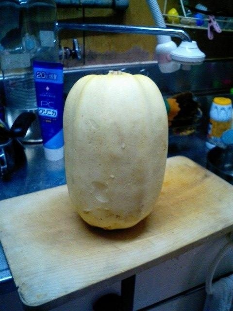 で、ゆでるとそうめんになるという南瓜を購入し、1週間ほったらかしにしてしまったのですが、ええ加減何とかしないと、ということで、料理して見ました。