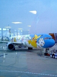 行きの飛行機はポケモンジェット!実は押し入れにポケモンを飼ってる私としては、想定外のラッキーにハッピー。