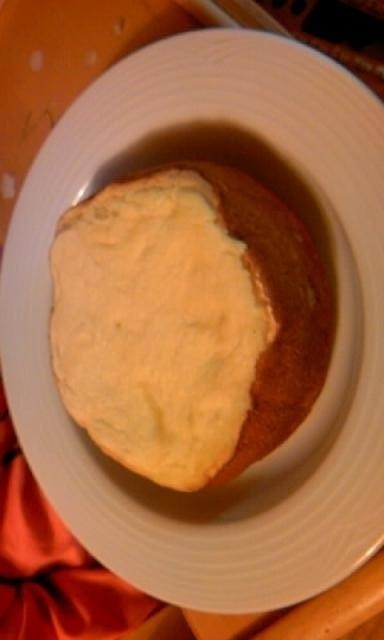 2007年04月30日(月) 日々我想 天使のなべで、ケーキを焼いてみた 白い部分はナベに面してないところ 昨日届いた天使のなべで、ケーキ焼いてみました。 卵2個を泡だてて砂糖と小麦粉を加えたタネを、バターを塗りたくったなべに流し込んで、弱火でトロトロ焼きます。 15分ぐらいかなぁ、、、いい匂いがして、焼き上がりました。ふたをひっくり返すと、するっと抜けましたよん。 お味は、なかなかです。中はしっとり、外はさくさくっぽい、私好み。 有塩バターの部分がしょっぱく感じたので、無塩バターにしたほうがよかったかも。 次回はそこにりんごでも敷いて、焼いてみようっと。 関連記事