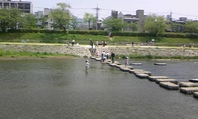 ピクニックには最高のお天気! 道中でパンを買って、家族で鴨川に来ています。 さすがにまだ水は冷たいけど、気持ちいい〜