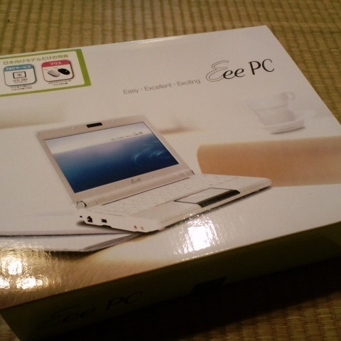 待望のモバイルパソコン「Eee PC 901-16G」(パールホワイト・16GBモデル)、お昼に到着しました! 予想以上に小さい箱に入っています。 中には、...