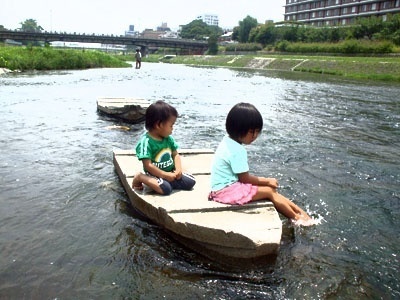 2008年07月05日(土) 京都 < 日常旅 < 日々我想 鴨川で水遊び パン屋でランチ用にパンを買って、99Shopでドリンクを買って、鴨川へ水遊びに出かけました。 水もきれいで、そりゃ気持ちいこと! 魚の赤ちゃんたち お魚のあかちゃんも、わらわら泳いでいました。簡単にに手ですくえるくらい、、、金魚すくいならぬ稚魚すくい? ヤゴの抜け殻 ヤゴの抜け殻があちらこちらの渡り石に引っ付いていました。 お舟にのって 子どもたちのお気に入りは、お舟の上。気持ちよさそうです。 関連記事 川で魚をゲットだぜ!京都白川子供夏祭りに参加してきました チラシを貰って知った、白川子供夏祭り。 白川の三条通りを下がったあたりで、毎年8月の第一日曜日に行われている、子供のお祭りです。 白川で金魚や… 詳細をみる 真夏の京都動物園 暑い中、京都市動物園に行ってきました!娘の動物園飼育員体験の様子をストーカーするために、こっそり覗きにいっただけなのですが…。 動物たちのう… 詳細をみる 「モノより思い出」な我が家の教育方針(かも) 教育関係は夫に任せていますが、振り返ると我が家の方針は、 「モノより思い出」 が基本になっているような…なので、町内イベントやみやこめっせでの… 詳細をみる