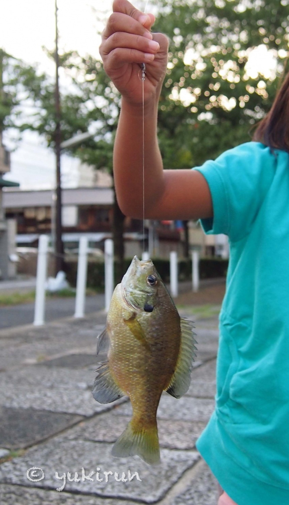針と糸で、食パンをエサにして、ブルーギルが2歳児女子でもバコバコ連れていました。