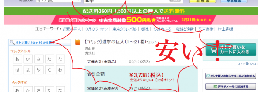中古なら、ブックオフの大人買いじゃない?