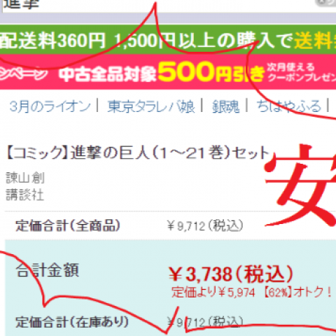 【Kindleコミックセール】『進撃の巨人』がポイント45%還元!でもブックオフでポチってしまった件